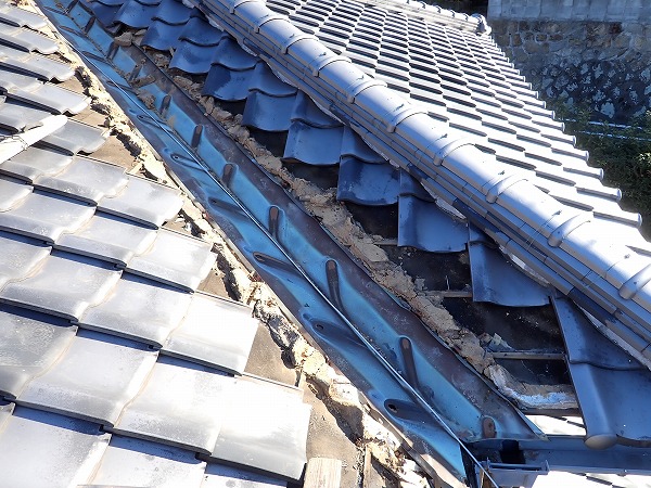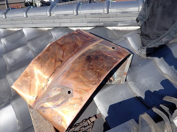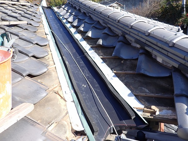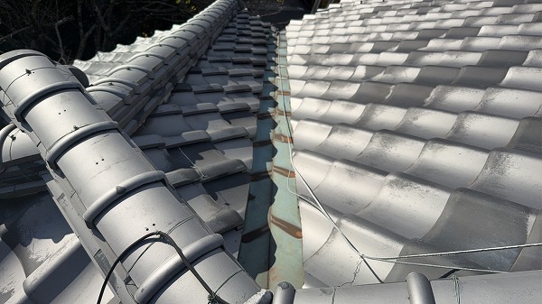 お客様は「2階はほとんど使わないため、気がついた時には天井が大きく傷んでいた」と心配されており、一刻も早く状態を知りたいとのことでした。特に瓦屋根は外見がしっかりしていても、内部の谷板金や隙間から水が入り込むことがあるため、不安を抱かれるのも無理はありません。お住まい全体への影響を最小限にしたいというお気持ちを受け止めながら、丁寧に現状を確認し、安心いただける説明を心がけました。
